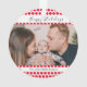 A stylish modern photo holiday Christmas tree ornament with hand written typography "Happy Holidays" in black on a clean simple minimalist white background with red polka dots. The photo, holiday greeting, name and year can be easily customised for a personal touch. A simple, minimalist and contemporary Christmas design to stand out this holiday season! The image shown is for illustration purposes to be replaced with your own photo. The placeholder image is of a young family of three, with mum and dad kissing their little baby.
