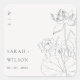 Minimal Elegant Waterlily Floral Sketch Wedding Square Sticker