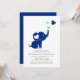 Minimal Elephant Blue Baby Shower Virtual Option Invitation