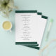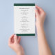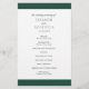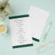 Modern jewel tone emerald green budget wedding program flyer with a bold band across the top and bottom. Your names are in a classic serif font and your details are in a combination of a modern sans serif font and an elegant script. The back has a band along the bottom along with your monogram. This simple and minimal design with traditional wording is great for a formal wedding.