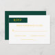 Minimal Emerald Green Gold Monogram Classy Wedding RSVP Card