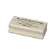 This simple rubber stamp design features a custom family name and a custom address. It also features a row of oval shapes.