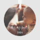 Simple, minimal, and modern family photo with family name overlay in white script.