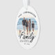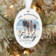 Celebrate Family Moments with Our Minimal Family Photo Custom Script Name and Year Ornament! This elegant ornament features a heartfelt script typography quote: "Family. Where Life Begins and Love Never Ends." Below the quote, personalise it with your family's established year. Above the quote, add your cherished family photo in a stylish curved frame, with your family name beautifully displayed on the curved layout of the photo. Perfect for the upcoming family reunion, as a housewarming keepsake memory gift, or for Christmas, this ornament makes a wonderful keepsake souvenir. It's a lovely addition to any home decor, serving as a constant reminder of the love and togetherness that family brings. Add a touch of family warmth to your holiday decorations with this unique, personalised ornament. Personalise yours today and make every celebration extra special with this timeless keepsake!