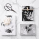 Minimal, modern monochrome festive holiday leaf foliage three pattern design wrapping paper. Our modern black, white, and grey complementing pattern wrapping paper sheets are perfect for a stylish, modern, and non-traditional look. Wrapping paper sheets feature our hand-drawn rustic simple silhouette of cedar leaf foliage, pine needles and pinecones arranged in a modern bold pattern print for a bold look. Artwork and pattern design hand-drawn by Moodthology Papery.
