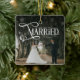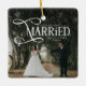 Minimal First Christmas Married Couples Photo Ceramic Ornament