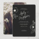Minimal Floral Botanical Black Noir Photo Wedding Invitation