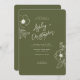 Minimal Floral Botanical Moss Green Wedding Invitation