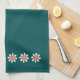 Minimal Flower Border Retro Deep Teal Tea Towel