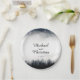 Minimal foggy spruce forest nature wedding. Landscape photograph of fog trapped in between the spruce forest making its way through the branches. Dark black and white. Pesonalizable names and everything you need you can customise.