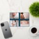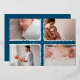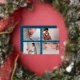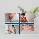 Four Photo Blue Silver Bokeh Birth Announcement Card