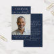 Keep the memory of a loved one close with this custom color personalized prayer card (shown in navy blue) featuring one treasured photo, the title FOREVER IN OUR HEARTS, name and dates and an editable heartfelt remembrance message. With its simple yet elegant classic black and white design and modern handwritten script typography, it makes a meaningful keepsake to share at a funeral, memorial service or Celebration of Life and offers comfort and a lasting tribute for family and friends. Its small and portable size of 3.5x2" (wallet-sized) makes it convenient for loved ones to carry it with them as a reminder of your loved one’s life and spirit. Personalization makes each card unique.