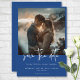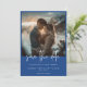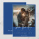 This wedding save the date card design features a beautiful French blue background and is the perfect canvas for your favourite couple photo. The simple details appear in white text. The back features the couple's first names. Unique and elegant, this design can be used for any season. Created by Simply Farmhouse Press.