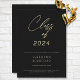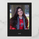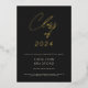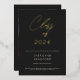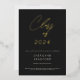 Elegant and understated, this graduation announcement is modern and simple, but sophisticated, with its plain black background and creamy white text. The handwritten title font is real gold foil. Announce your achievement with class and elegance. Created by Simply Farmhouse Press.