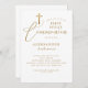 Minimal Gold Cross Calligraphy First Communion Invitation