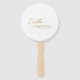 Modern faux gold wedding hand fan featuring a simple and minimal design with the bride's name in an elegant script and the groom's name in a contemporary sans serif font. The back has your favourite photo. A minimalist design that goes well with any style of wedding.