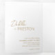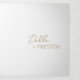 Modern faux gold trifold wedding invitation featuring a simple and minimal design with the bride's name in an elegant script and the groom's name in a contemporary sans serif font. Below in the lower right corner are your event details in a minimalist layout. The middle panel has your favourite photo, the right panel is your RSVP card and the back has your additional details.