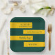 This elegant green and gold Paper Plate is perfect for a modern Birthday. the simple design features elegant green calligraphy on gold stripes on a green background.