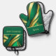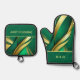 Our elegant oven mitts and pot holders feature a minimal design with sleek green and gold stripes, bringing a touch of sophistication to your kitchen. The simple yet stylish look is complemented by personalised monograms, adding a unique and refined touch to each piece. These accessories ensure durability and protection while handling hot cookware.