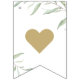 Modern chic watercolor botanical foliage greenery, cute gold colour heart shape, simple and elegant, great Miss to Mrs. bride to be bunting flags for modern rustic bridal shower, botanical garden wedding in spring and summer.