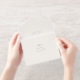 A modern all-in-one wedding invitation features foil hand-lettering and modern typography.