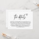 The "Minimal Handwritten Script Wedding Enclosure Card" combines simplicity with a personal touch. Featuring elegant handwritten-style script, this card beautifully conveys essential wedding details like directions, accommodations, or special notes. Its minimal design allows the graceful lettering to take centre stage, creating a warm and intimate feel. Perfect for couples seeking a modern yet heartfelt touch, this enclosure card adds a unique charm to your wedding stationery, ensuring your guests feel welcomed and informed.