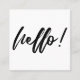 Minimal Hello in Handwriting Script Black on White Square Business Card