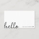 A minimal business card design with a stylish handwritten script large typograhy quote "hello" paired with your own name and a simple black heart. Designed in a modern mininalist style in clean simple black and white. The perfect personalised gift or accessory for any time of year!