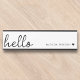 A minimal door sign design with a stylish handwritten script large typograhy quote "hello" paired with your own name and a simple black heart. Designed in a modern mininalist style in clean simple black and white. The perfect personalised gift or accessory for any time of year!