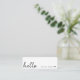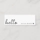 A minimal mini business card design with a stylish handwritten script large typograhy quote "hello" paired with your own name and a simple black heart. Designed in a modern mininalist style in clean simple black and white. The perfect personalised gift or accessory for any time of year!