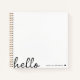A minimal notebook design with a stylish handwritten script large typograhy quote "hello" paired with your own name and a simple black heart. Designed in a modern mininalist style in clean simple black and white. The perfect personalised gift or accessory for any time of year!
