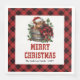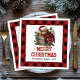 Bring cozy farmhouse charm to your holiday table with these beautifully designed Christmas napkins featuring an adorable watercolor Highland cow sitting in a rustic bucket, surrounded by vibrant holly berries, pine branches, and red poinsettias. The classic red and black plaid/buffalo/tartan pattern adds a warm seasonal touch, blending rustic country style with festive Christmas elegance.