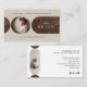 Showcase your holistic or wellness brand with our elegant and minimal celestial business card template. The front features a refined design with faux woodgrain circles and arch shapes forming a delicate crescent moon behind a circular photo placeholder, perfect for highlighting your portrait or logo. Add your business name, logo, and website to create a professional and cohesive look. The reverse side includes a second arch-shaped photo frame, allowing you to showcase another image or product. Contact information is elegantly arranged in a clean, minimal layout. All colors and elements are fully customizable to match your brand style. Ideal for holistic brands, yoga instructors, spiritual guides, therapists, spas, fashion professionals, and more. Designed by ©Moodthology Papery