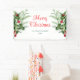 Minimal Christmas banner features a holly berries branches on a white background. Personalise it with your name.