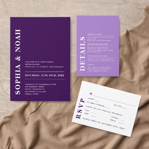 Modern Minimal Purple Lavender White WeddingDesigned by Uneza K