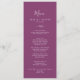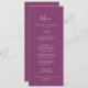 This minimal leaf berry purple wedding dinner menu card is perfect for a boho wedding. The design features a simple greenery leaf silhouette in a romantic summer violet colour with minimalist bohemian garden style. This menu can be used for a wedding reception, rehearsal dinner, or any event.