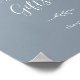 This minimal leaf blue and white cards and gifts poster sign is perfect for an elegant wedding or bridal shower. The design features a simple greenery silhouette in white on a dusty blue background with classic minimalist style. The line of text at the bottom of the sign can be personalised with the date, the names of the bride and groom, or a short message like "Thank you". This sign can be used for a wedding or any event or party.