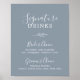 This minimal leaf blue and white signature drinks poster sign is perfect for an elegant wedding. The design features a simple greenery silhouette in white on a dusty blue background with classic minimalist style.