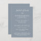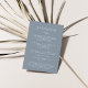 This minimal leaf blue and white weekend schedule of events enclosure card is perfect for an elegant wedding. The design features a simple greenery silhouette in white on a dusty blue background with classic minimalist style.