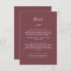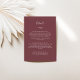 This minimal leaf burgundy details enclosure card is perfect for a boho wedding. The bohemian design features a simple greenery silhouette in a dark red wine colour with classic minimalist boho style.