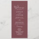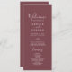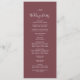 This minimal leaf burgundy wedding program is perfect for a boho wedding. The bohemian design features a simple greenery silhouette in a dark red wine colour with classic minimalist boho style. Include the name of the couple, the wedding date and location, thank you message, order of service, wedding party and an optional "in loving memory" memorial.