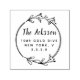 Modern return address stamp featuring your name in a stylish script and your address in simple typography. Save time and effort by effortlessly personalising your return address. Perfect for wedding invitations, party announcements, everyday correspondence and business mailings.