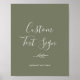 This minimal leaf dark green custom text sign is perfect for a boho wedding. The design features a simple greenery leaf silhouette in olive green with minimalist mountain bohemian style. Customize the wording to say anything you'd like! This sign can be used for cards and gifts, guest book, wedding hashtag, favors, dessert bar -- anything! It can be used for a wedding, bridal shower, rehearsal dinner or any event. The line of text at the bottom of the sign can be personalized with the date, the names of the bride and groom, or a short message like "Thank you". If you would like multiple coordinating signs, customize and add to your cart one at a time.