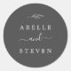 These minimal leaf dark grey wedding envelope seals are perfect for an elegant wedding. The design features a simple greenery silhouette in charcoal grey with classic minimalist style. Personalise the label with the names of the bride and groom.