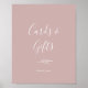 This minimal leaf dusty rose cards and gifts poster sign is perfect for a boho wedding or bridal shower. The romantic design features a simple greenery silhouette in solid blush pink mauve with classic minimalist boho style. The line of text at the bottom of the sign can be personalised with the date, the names of the bride and groom, or a short message like "Thank you". This sign can be used for a wedding or any event or party.