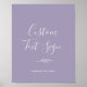 This minimal leaf lavender custom text sign is perfect for a boho wedding. The design features a simple greenery leaf silhouette in pastel lilac purple with minimalist bohemian garden style. Customise the wording to say anything you'd like! This sign can be used for cards and gifts, guest book, wedding hashtag, favours, dessert bar -- anything! It can be used for a wedding, bridal shower, rehearsal dinner or any event. The line of text at the bottom of the sign can be personalised with the date, the names of the bride and groom, or a short message like "Thank you". If you would like multiple coordinating signs, customise and add to your cart one at a time.