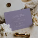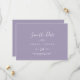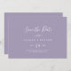 This minimal leaf lavender horizontal save the date card is perfect for a boho wedding. The design features a simple greenery leaf silhouette in pastel lilac purple with minimalist bohemian garden style.