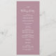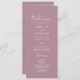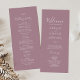 This minimal leaf mauve wedding program is perfect for a boho wedding. The design features a simple greenery leaf silhouette in a romantic purple pink colour with minimalist bohemian garden style. Include the name of the couple, the wedding date and location, thank you message, order of service, wedding party and an optional "in loving memory" memorial.