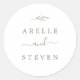 These minimal leaf olive green wedding envelope seals are perfect for a boho wedding. The design features a simple greenery leaf silhouette in olive green with minimalist mountain bohemian style. Personalize the label with the names of the couple.