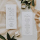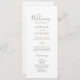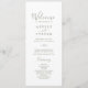 This minimal leaf olive green wedding program is perfect for a boho wedding. The design features a simple greenery leaf silhouette in olive green with minimalist mountain bohemian style. Include the name of the couple, the wedding date and location, thank you message, order of service, wedding party and an optional "in loving memory" memorial.